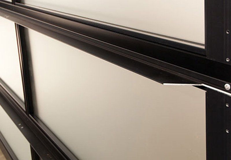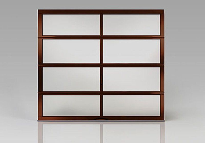 - Tempered full-view glass, acrylic or solid aluminum panel options. Insulated glass garage door panels are available for increased energy efficiency.